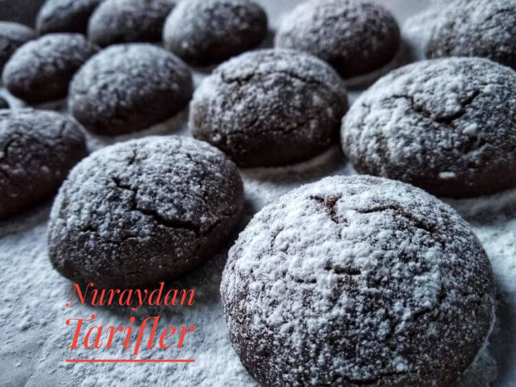 Fırından çıkardıktan sonra 2-3 saat dinlenince üzerine pudra şekeri serpelim. Mümkünse eğer bir gün önceden yapılırsa kurabiyeler daha güzel olur.