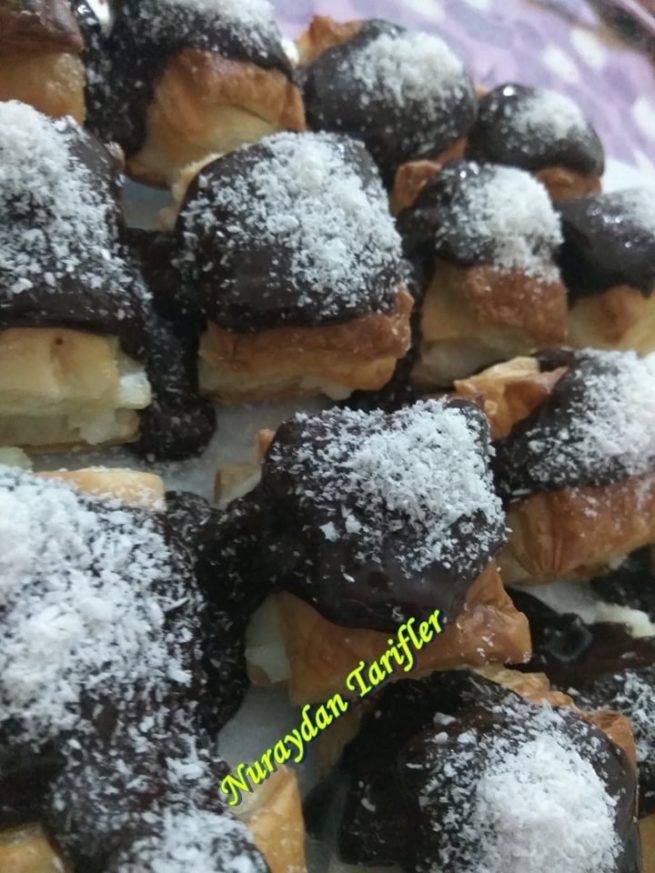 Milföyü tekrar kapatıp üzerine çikolata sosundan gezdirelim.