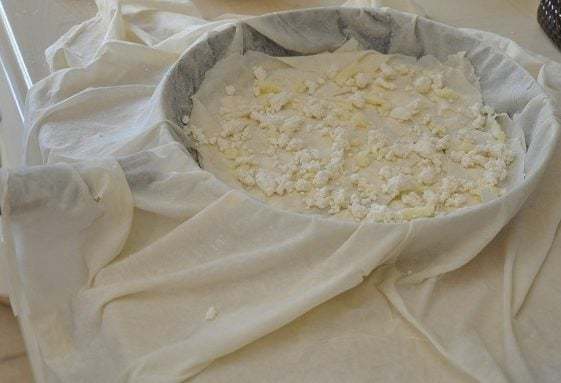 Büyük boy bir tavayı yağlayıp yufkanın tamamını kenarlarından sarkacak şekilde serelim.