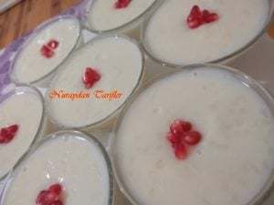 Bir su bardağında vanilyalı pudingi üzerine biraz soğuk su ekleyip iyice karıştıralım ve kaynayan sütlaca karıştıra karıştıra ekleyelim.